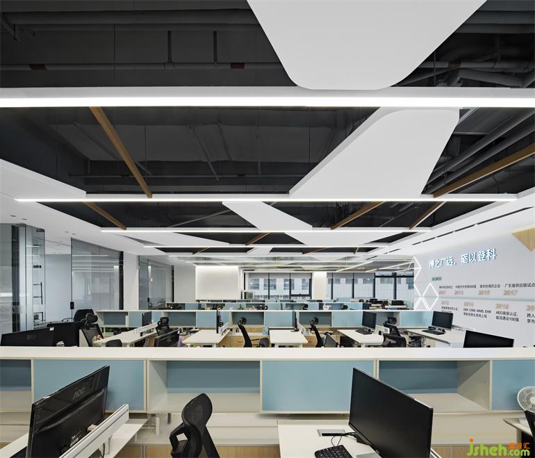 灵活的工作环境可以让员工随时随地有工作归属感。开放式的办公区域有天然的秩序感。设计在天花做法中穿插不规则梯形板,丰富空间。提高空间使用效率和区域效益。