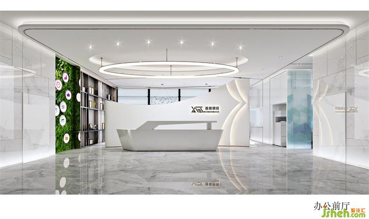 前厅利用半高的造型墙面分隔为前台与接待两部分,一条向上扬起的曲线打破空间的呆板,寓意起航的风帆。办公空间设计前厅左侧的荣誉文化墙活力动感。与造型背景结合,富于空间变化的美感。