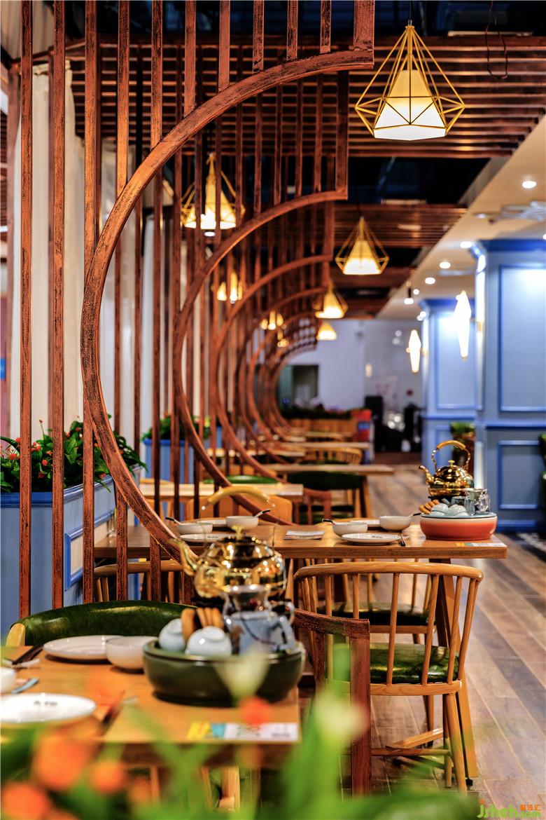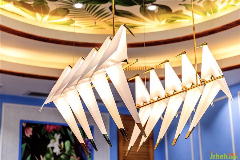 为凸显新派粤菜餐厅的潮流感,设计师在该设计中以热带风情为主题