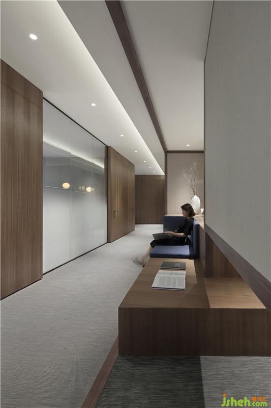 木饰面墙体产生的隔断感温和有力、收放自如,自然方正的形态遵循理性有序的设计法则,从而让整个大堂有了延长性、艺术性,工整有序,流畅而舒适。装修设计