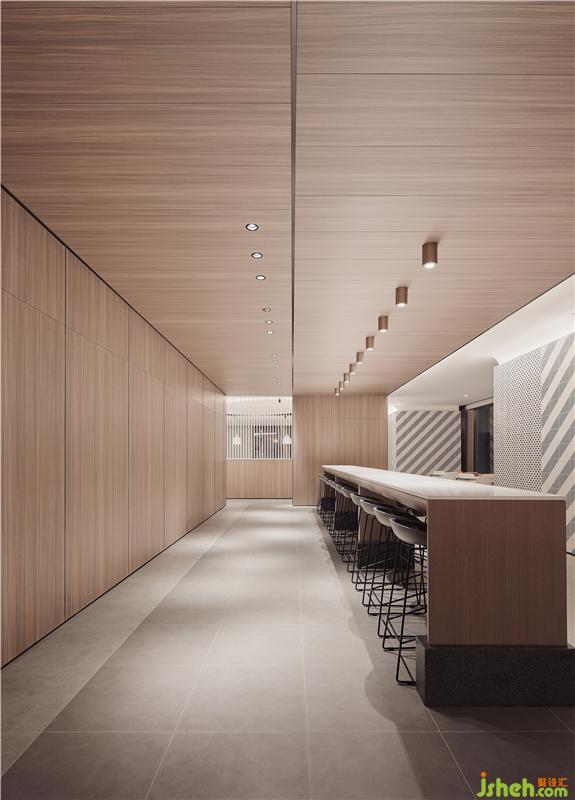 为了凸显空间布局转换,设计师采用大面积木饰面融入。自然的色调点缀出灰白对立的线条空间冷静的温度,在高冷基调中成为了融合而跳跃的存在。