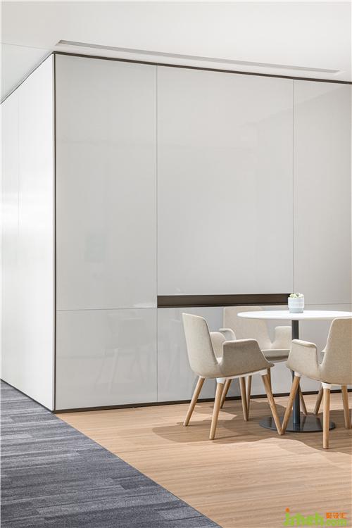 区别于茧型工作站,主办公空间之外划分出的各类谈话区则不拘泥于完整空间框架约束,更具有“群组性”及“非正式”感。