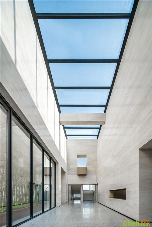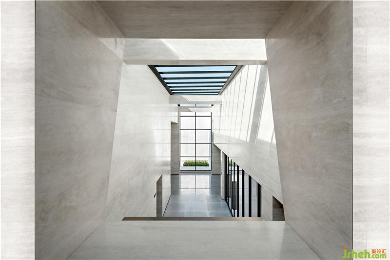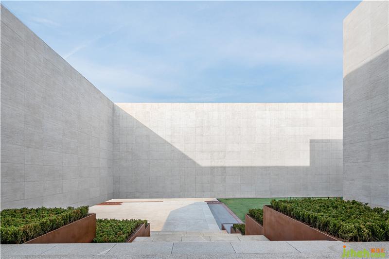 拾级而上,人的视线顺着坡地延伸的角度,寻找到入口的方向,衬托出极简的外观视像。设计师在建筑的美学基底上,将艺术纹理的昭示性融入空间之中,更像是对周时文化印记的再一次溯源,指引着光线恰到好处的渗透。