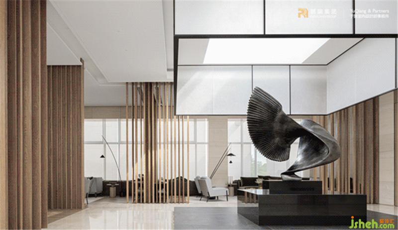 佛山售楼处设计以清新雅淡的水乡风物为线索,从城市的脉络中摄取灵感和元素,将河流、龙舟、民俗转化为空间视觉。