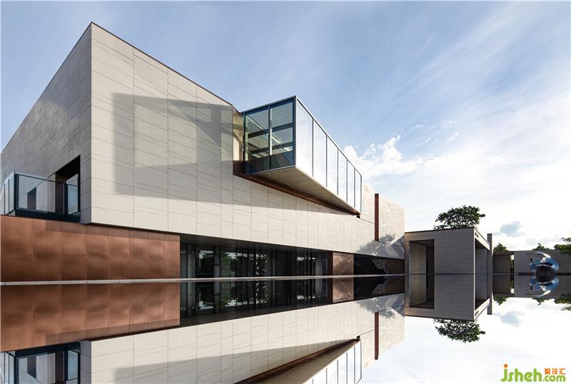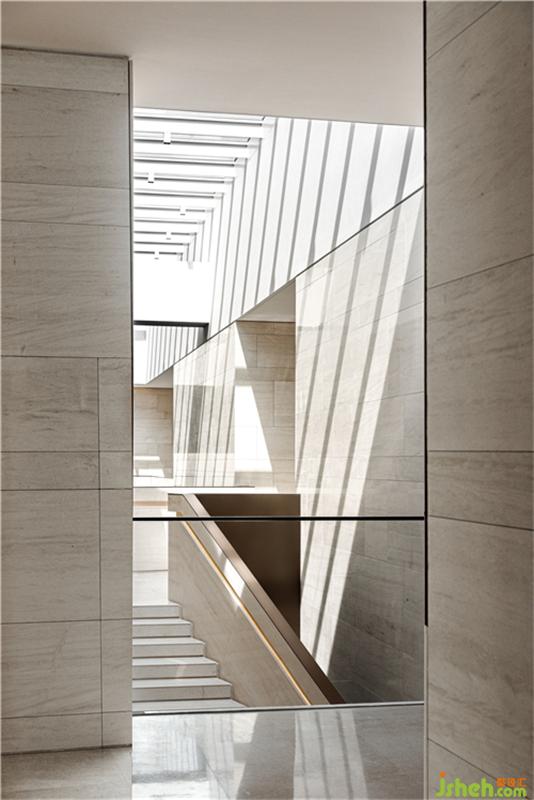 矩形立面素净而典雅,每一块石材有序地拼接,在同色调的单一材料的使用中创造出建筑的阴影和纹理。它不仅是一座建筑的立面,而是一个巨大的建筑雕塑。