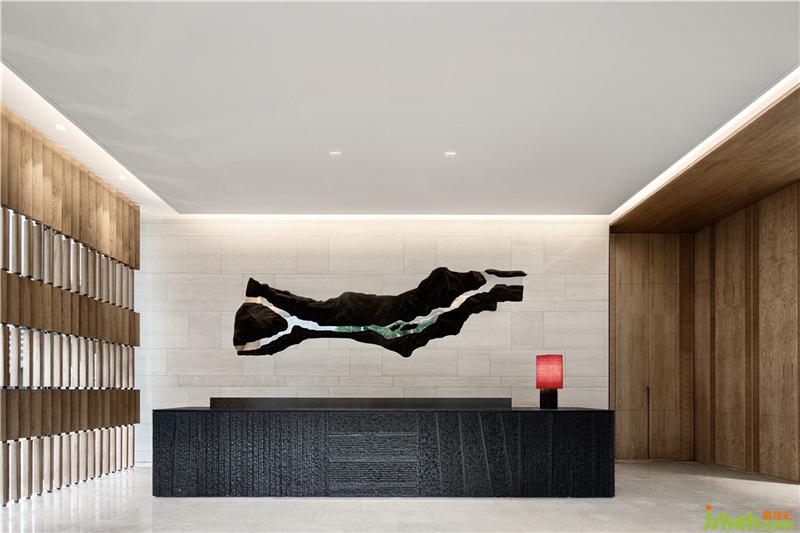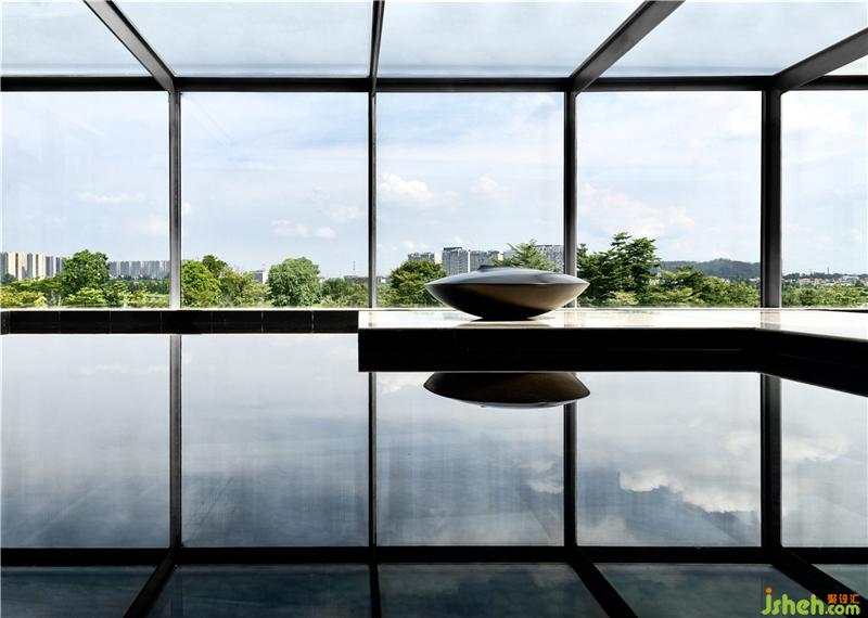 建筑在二层插入一个水体,打造“星空艺术馆”概念,观者在此抬头可见满目夜空,饱览令人惊叹的无边江景,成为空间的最大亮点。