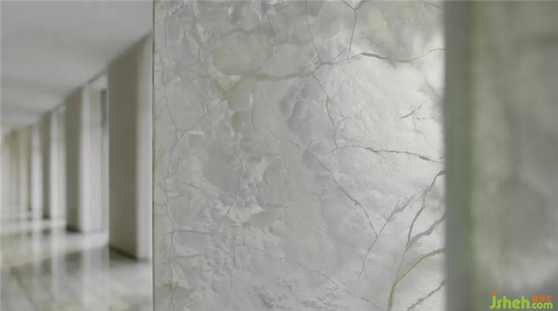 空间的隔断与分区,均通过玉石材质的屏风阵列来完成。天津销售中心设计师以大尺度线条切割出的视野广度,是空间最直接的“视觉导视”。玉石上自然游走的细致脉络,似流水、墨迹、云纹的自由演绎,给了空间柔软的骨骼和灵动的气血,透光形态下更显氤氲诗意。