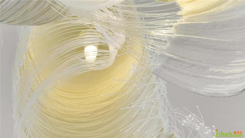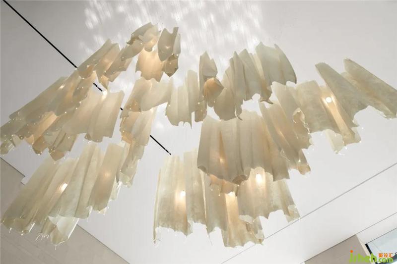 设计师巧妙运用了纸艺的透光性,穿入3000多根光纤装裱出层叠形态,微暖光芒与独特造型增添了整个空间的艺术气质。