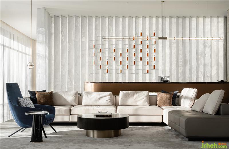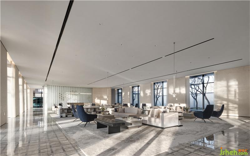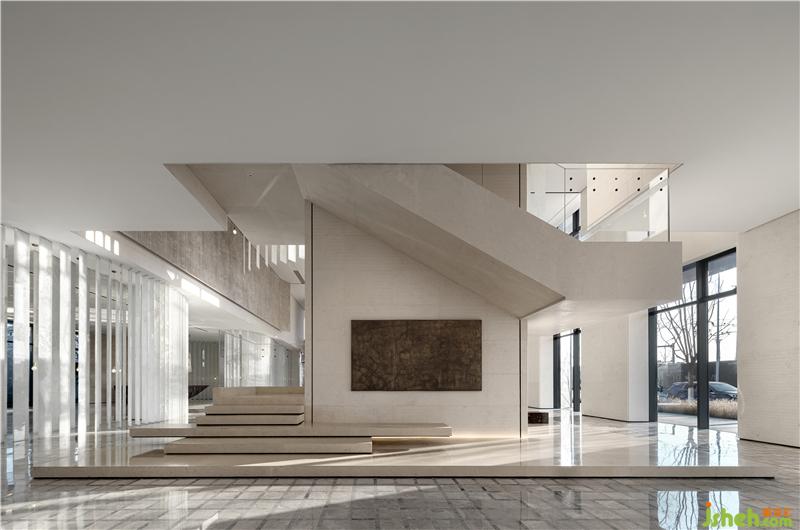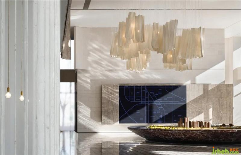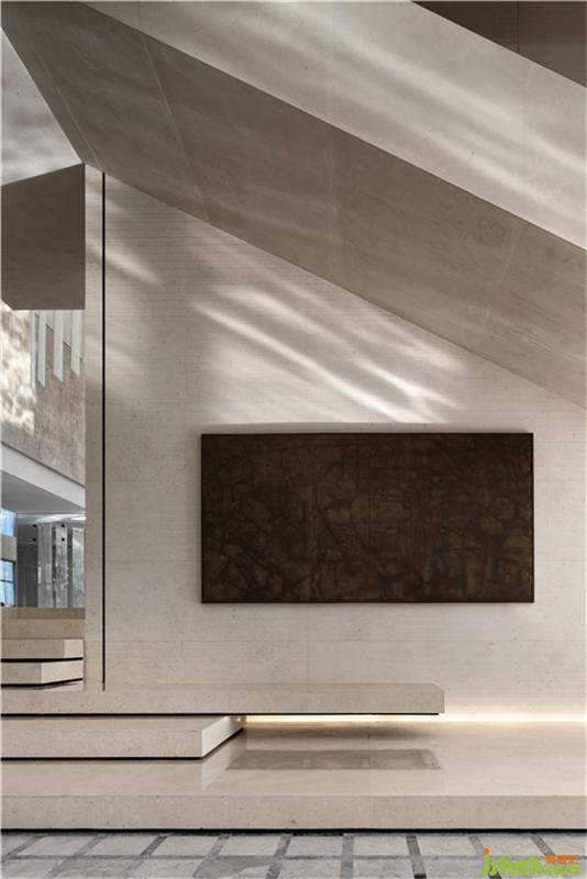 流动的光影,真实存在但又不可触碰,在时间性与空间性的交织下,连绵形成独特的场景影像。天津销售中心设计师对光影的驾驭,以艺术化的视觉呈现,为其注入内核力量,让其变得可体验、可感知,与空间场景融合在一起。自然的木元素与哑光面的天然米色石材格调互融,点缀以书的阵列架,呈现出一个柔和而温暖的品质空间。