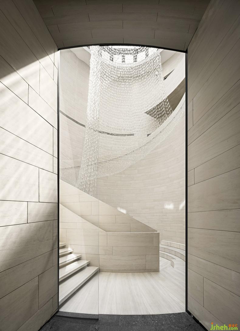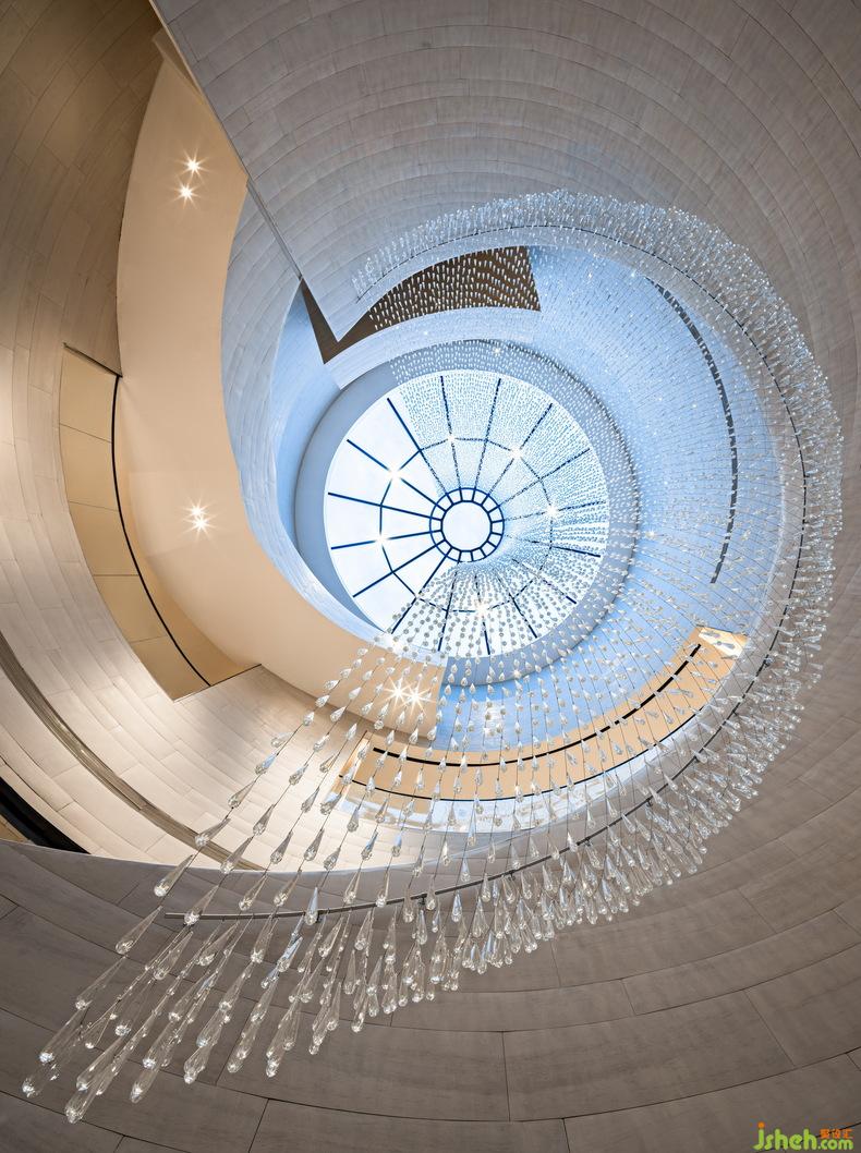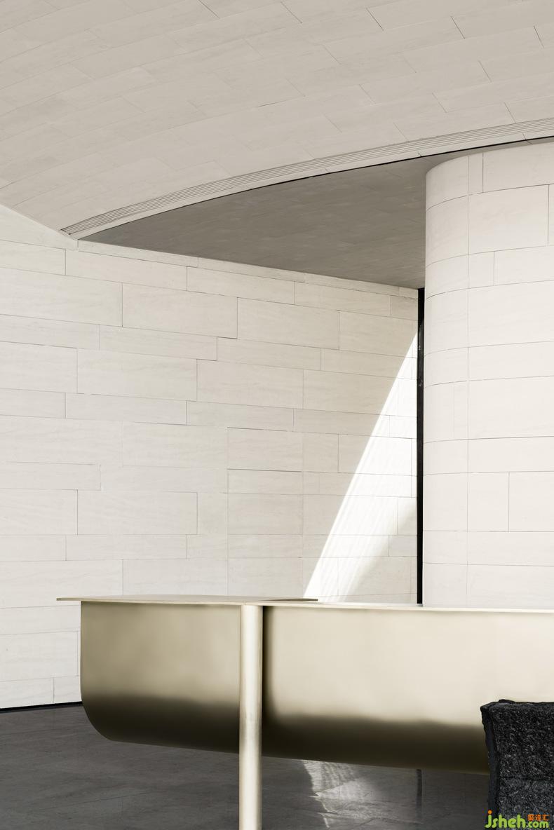 「时间」和「空间」是互相垂直的两个维度。贝壳型的天花造型旋转流动,售楼处设计构成前台背景,接待区的平行时空中「平衡」或「动态」微妙持续切换。