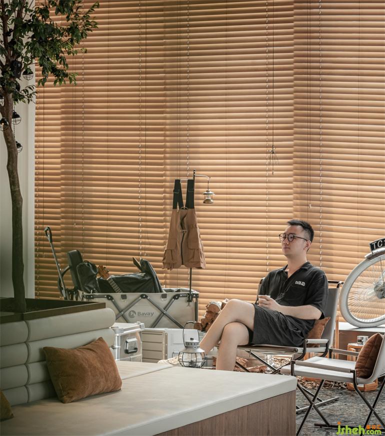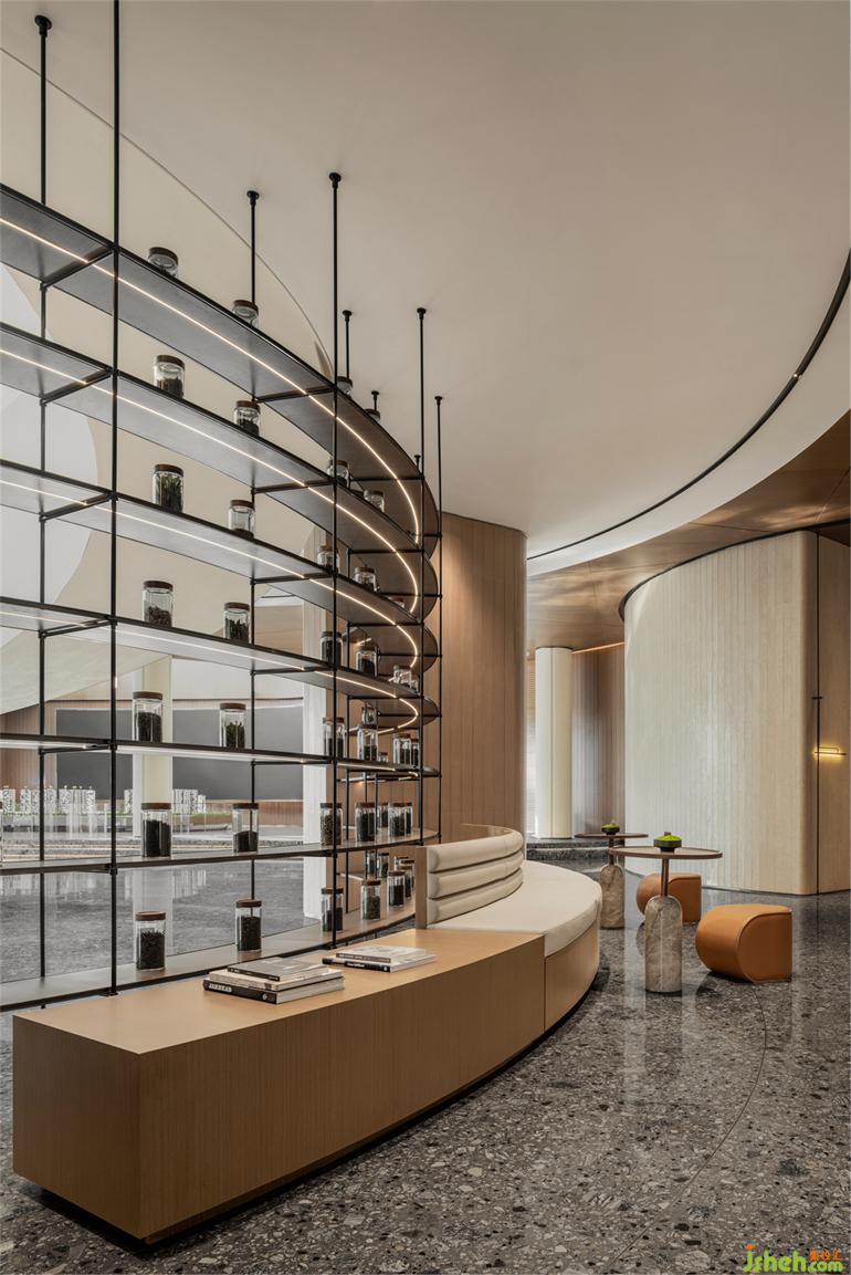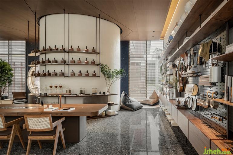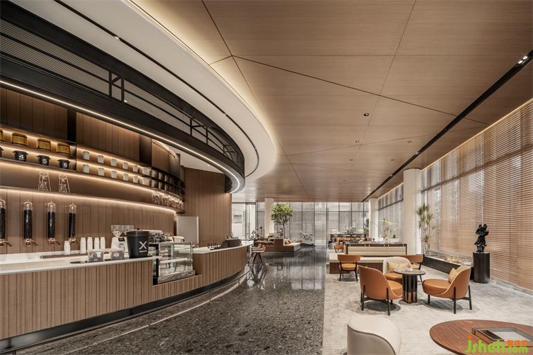 在咖啡&茶吧中,柔和与浓醇味觉相遇。广州售楼处设计操作台暗藏在圆形围合式台面中,木饰面与金属框架折射香气与灯光,环境视觉主打暖意纵生的社交自由感。