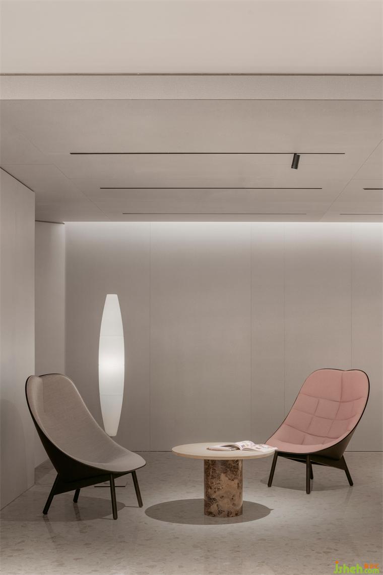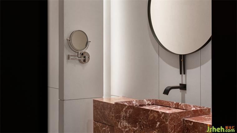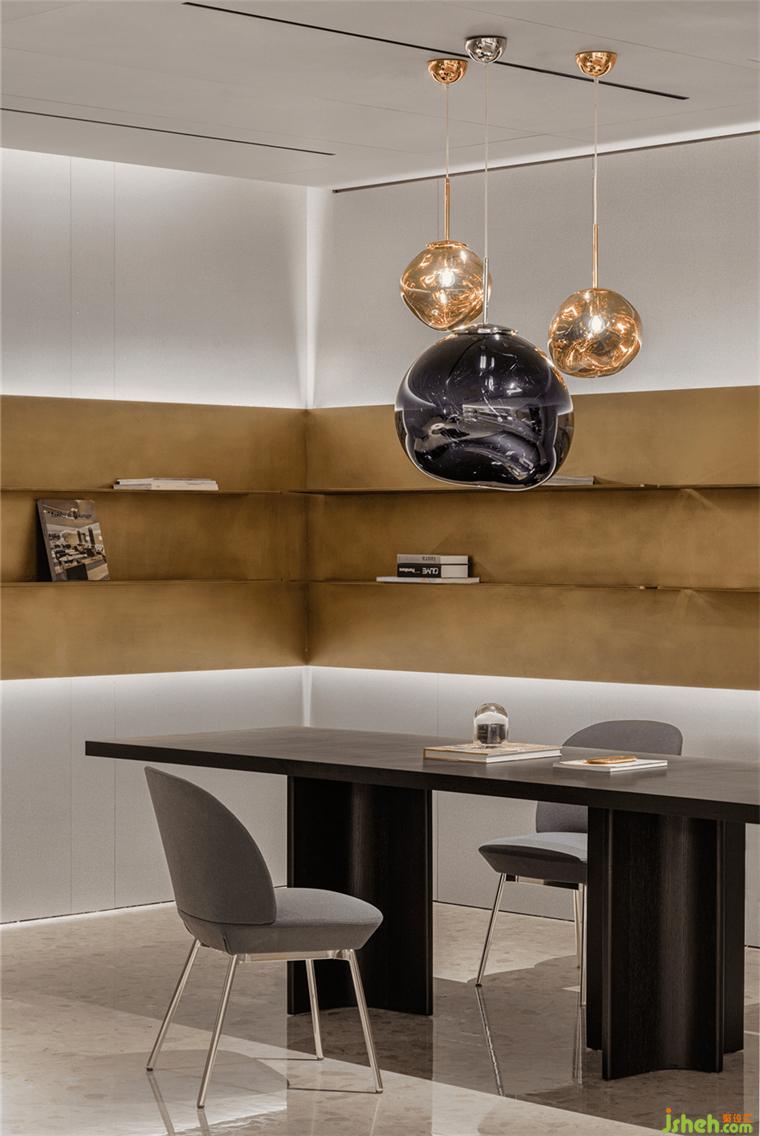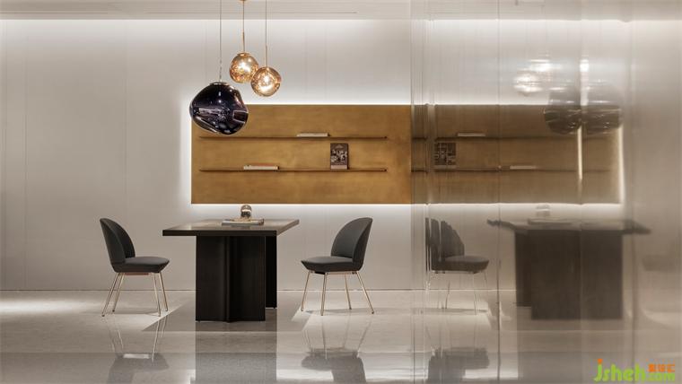 所有视觉背景都是简洁色彩体块搭配精致的工艺细节,装修设计让每个转角及留白处都更具层次。金属色泽在其中低调而不容忽视,冷静而柔和。