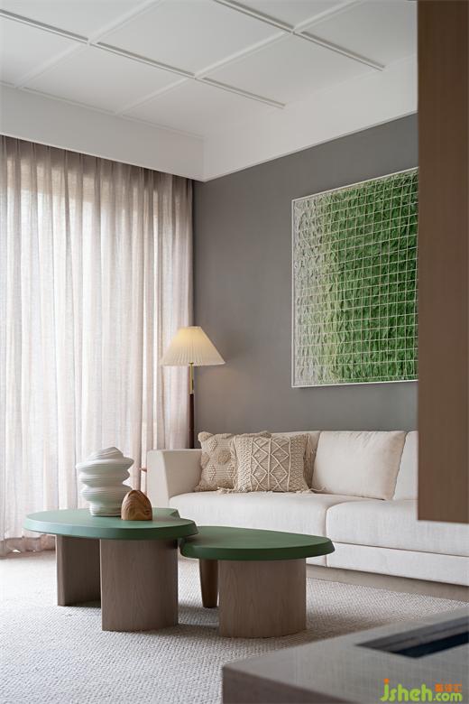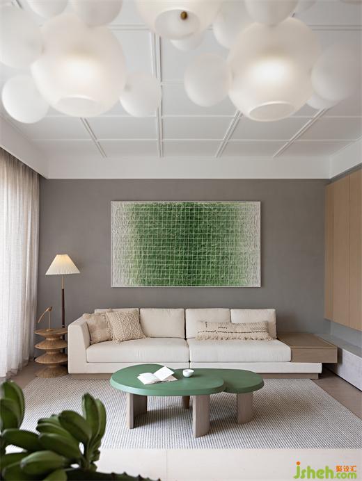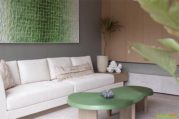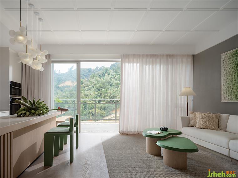融创样板房设计打造有机自然主义家居氛围客厅清新的绿色色调,与自然同频