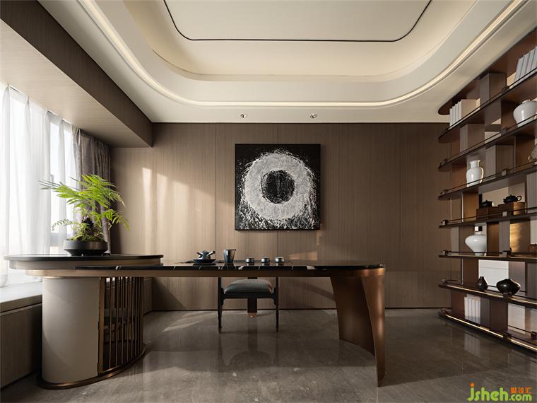 茶室可作为私密会谈的空间,样板房设计以现代中式道展示东方礼仪及主人的文化底蕴教养。
