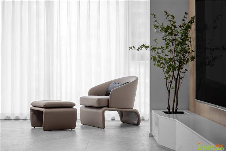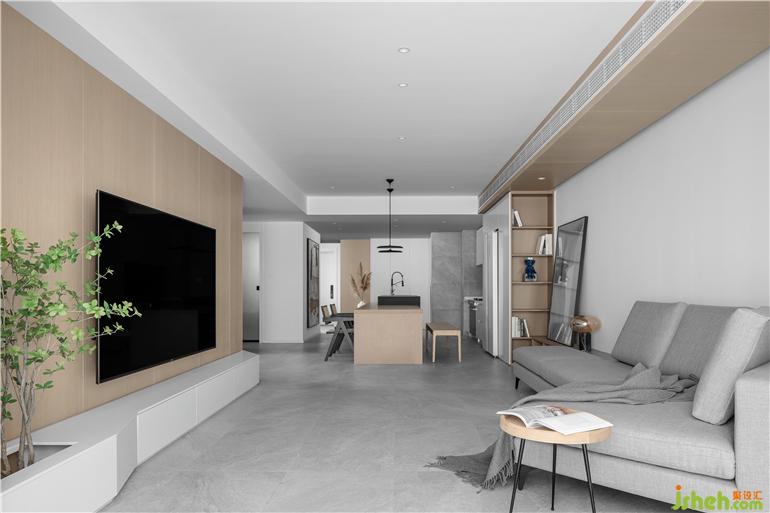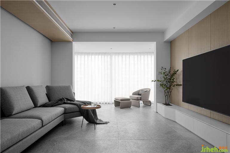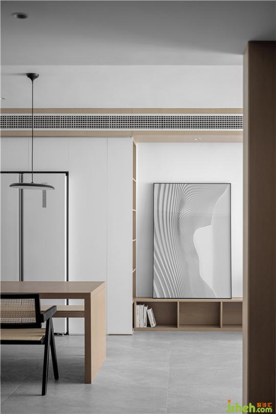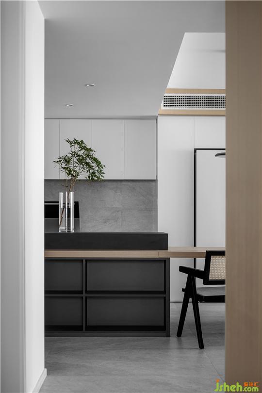 屋主喜爱宁静清净的环境,所以予上空间设计色彩搭配以经典的黑白灰搭配为主。主材的选择上,多以饱和度低、柔和的色彩为主。浅灰调的地砖,在充沛的光线下显得光洁通透;白色墙面,搭配木质元素的点缀,让居住者在家里无比的放松与自在。