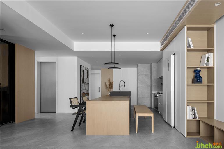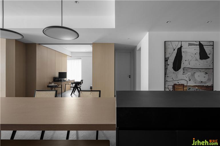 对于简约,我们理解为选材上的克制,用色的纯粹,不同的功能细节来支撑空间的平衡。石材与木质的搭配在冷暖调中也显得刚柔相济。一个大的厨房空间,加一个大的餐厅,三五好友或亲人可以经常相约而憩,聊天、聚会、看电影等,一起享受惬意时光。