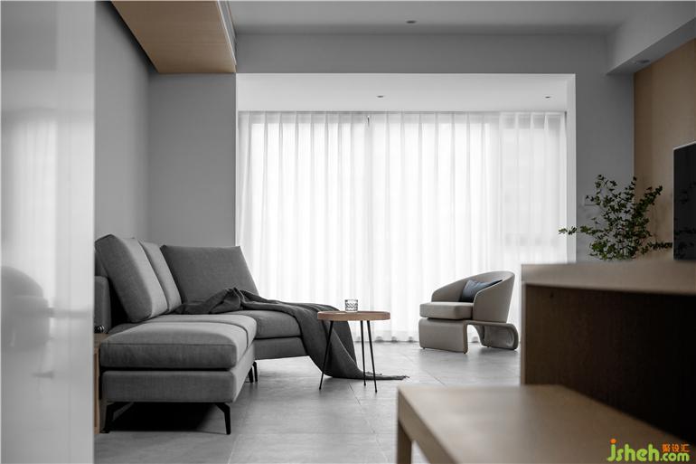 加长的空调风口,增强了客餐厅的连接性,也让整个空间更具通透性。随性而不随意摆放的家具散落客厅与阳台,和煦的阳光透进窗户,随着一天的时间有着深浅且细腻的变化。
