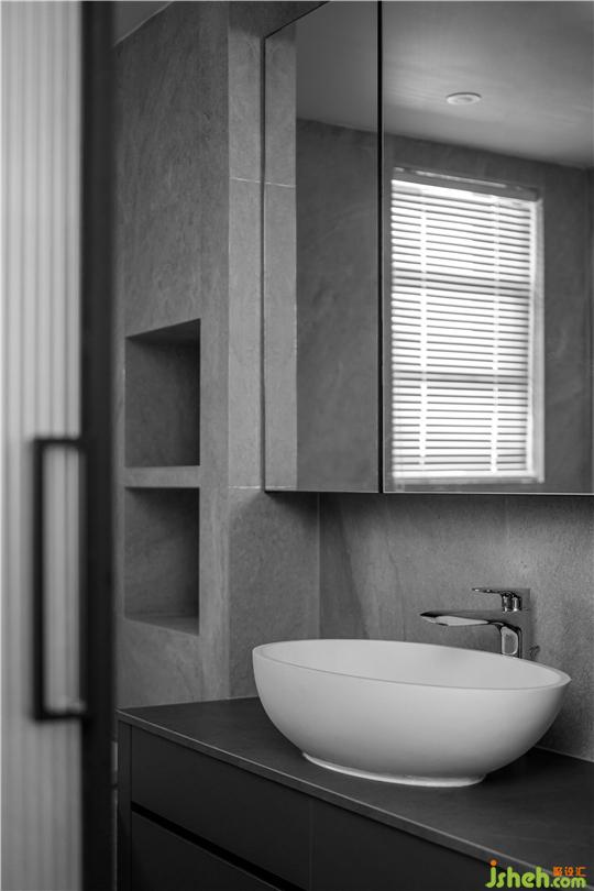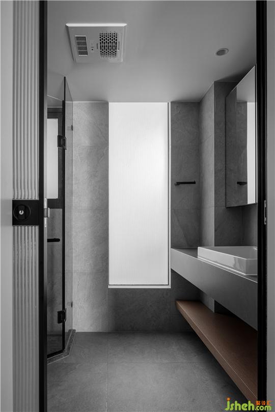 盥洗室是能让人洗去一天疲惫,使身心得到休息放松的空间。主卫和次卫都以灰色调为主,在满足储物量的同时,摒弃繁杂,以简洁、干净搭配,让空间变得更简单舒适。