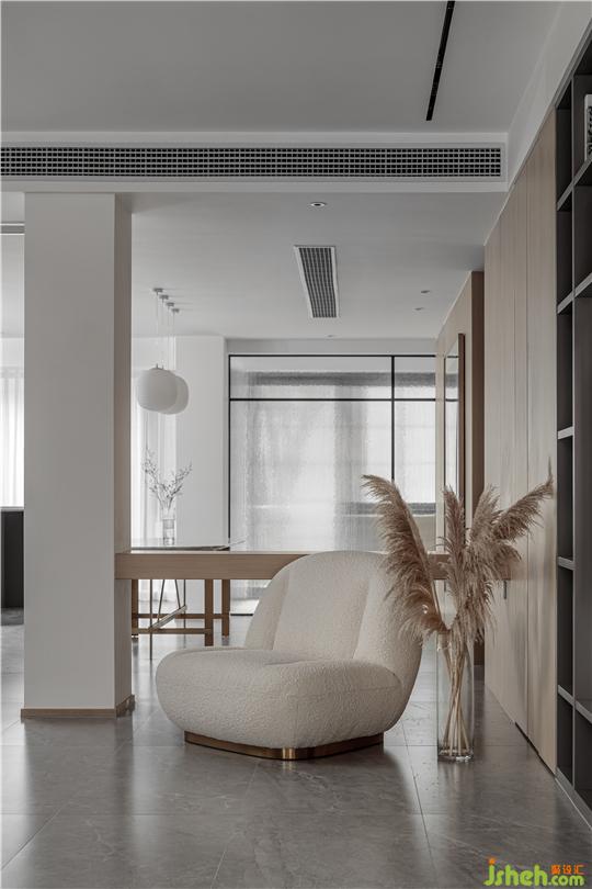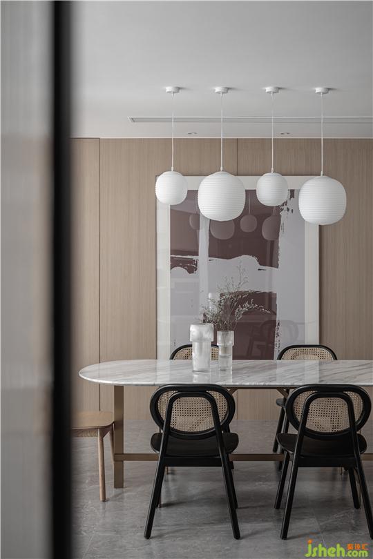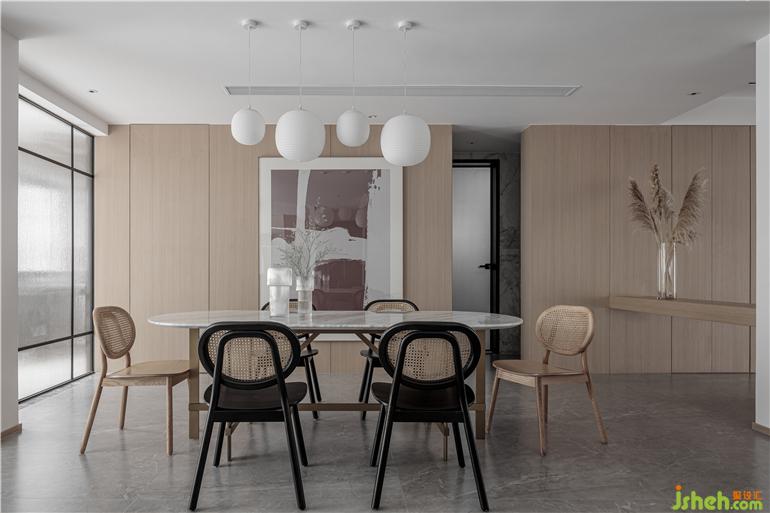 本案为现代设计风格,采用极简解构主义设计手法,通过局部块面分割处理,凸显了整个空间的层次感与品质感。原木的材质呈现出温暖质朴的空间气质,方寸之间承托着生活的喜乐平和。