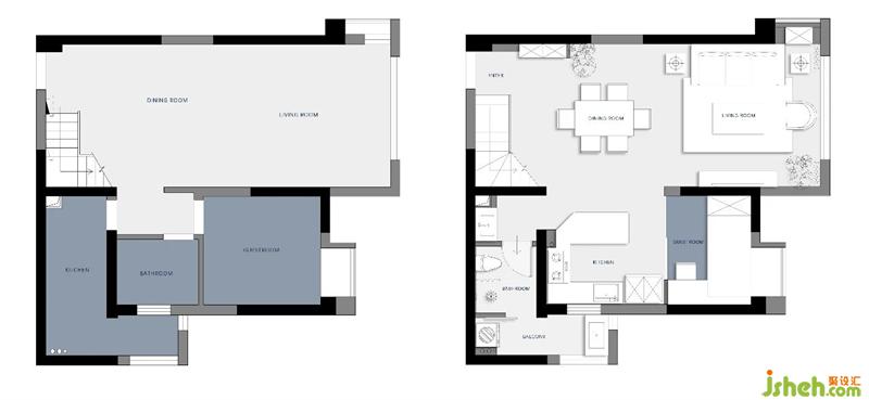 ️原房规划的卫生间区域较小,且厨房区域与餐厅分离较远,一楼整个公共区域相对狭长。改造后厨房与卫生间对调,将厨房区域向外扩张,在保够客房的同时,开放式的厨房将厨房与餐厅巧妙的连接在一起,增大了空间视觉感同时提高了空间利用率。卫生间也实现了干湿分区。