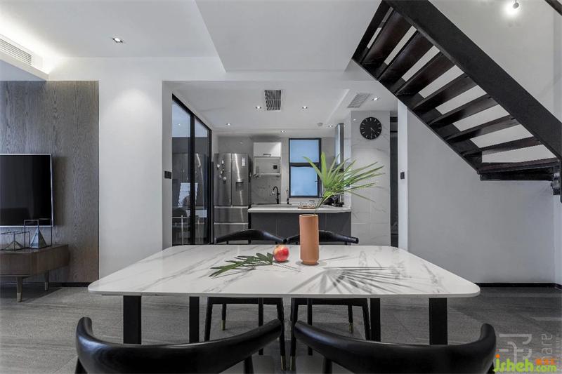 餐厅与厨房的巧妙结合,打破了原本狭长、空间局促的餐厅;改造后拥有一个完整的餐厨空间,餐厅也显得更加整体,大气。