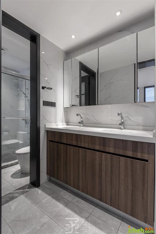 原卫生间很小,无法满足三个卧室的使用需求,改造后卫生间做到双盆三分离式互相独立,互不干扰,大大提升了生活效率。即使是工作日的早上,也不容易出现抢厕所的问题。