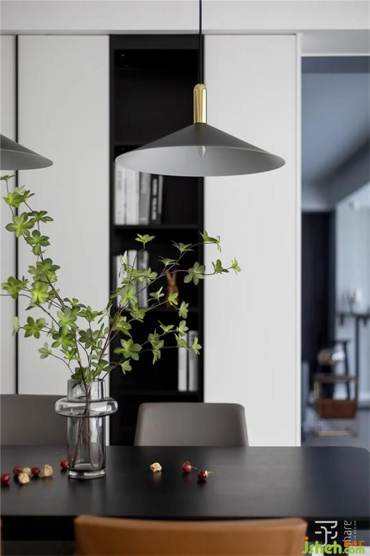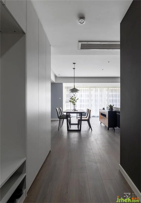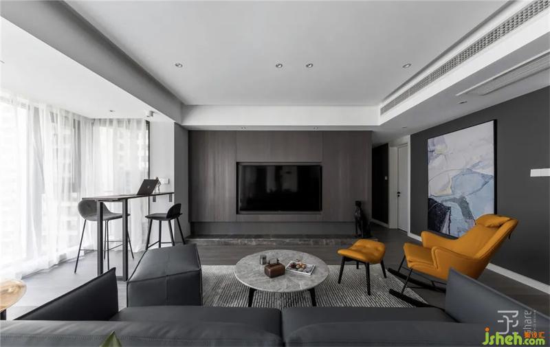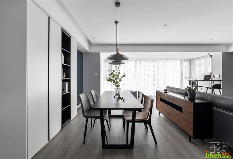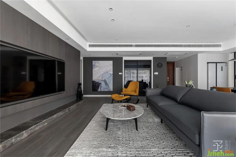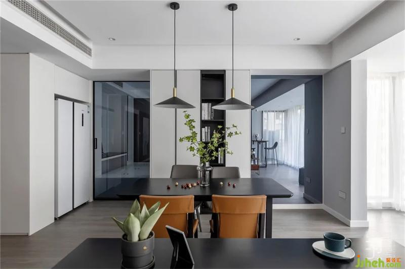 我喜欢黑,亦喜欢白,当黑白交织在一起的时候,又融合出了另一种不仅神秘而且具有一丝纯洁的颜色—灰。本案选用黑白灰为主色调,搭配胡桃木色做修饰,营造简约干净的氛围。