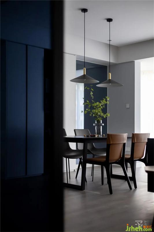 我们取消客餐厅之间原有推拉门,客餐厅与阳台区域的分隔也被打开,让原本较窄的阳台空间更好的融入客厅。同时把阳台封装成几面超大的落地玻璃,让整个空间更为通透和宽敞,让就餐空间不再单调。