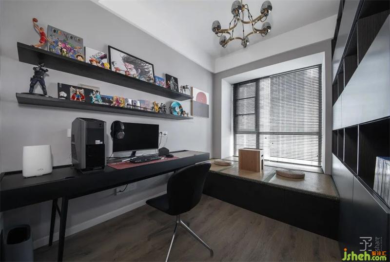 成都家居设计对空间的重组,可以让生活更加有序。拆除书房与次卧之间的墙体拆,对空间重新进行分区,创造出更多的储藏空间出来,大面的书柜用来收藏业主的手办、游戏卡、书籍等。