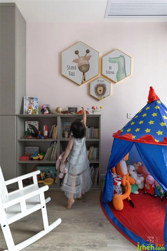 粉色,是少女对梦幻的追寻,陪伴每一个夜晚。深浅粉色漆的碰撞,让空间温柔而不失个性,矮矮的收纳柜,收藏着心爱的故事书,是童年的美好回忆。