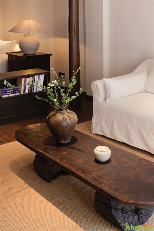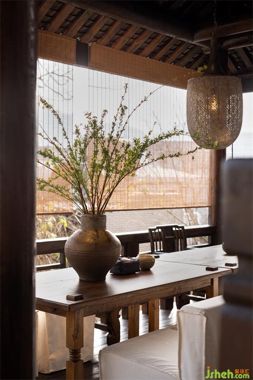 材料随着时间的变化自然而然的产生恬静、侘寂之意,陈旧的木质茶几、质朴残缺的陶罐,被岁月洗涤的质感,民宿设计在空间内无不透露着回归自然的格调。