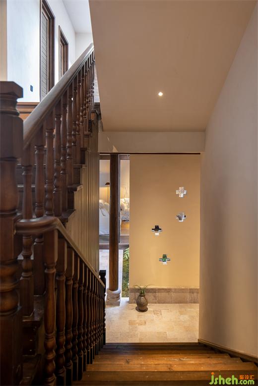 循着楼梯拾级而上,恰到好处的十字窗格,民宿设计以云南特色绣布装点的艺术装饰画,这些元素的点缀不仅有高雅古韵之意,也有现代简约的气质。