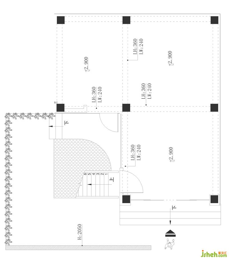 ▼ 一层原始平面图,空间“视觉焦点”超比例楼梯原本是位于户外的鸡肋设计