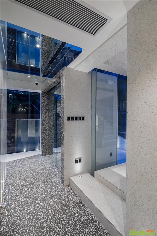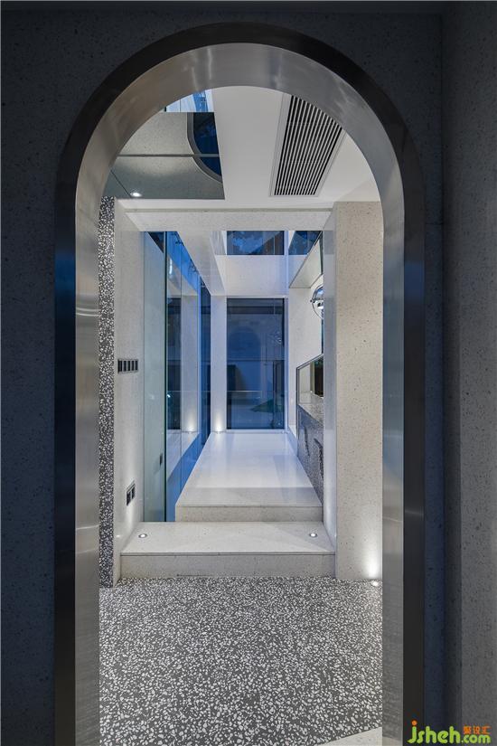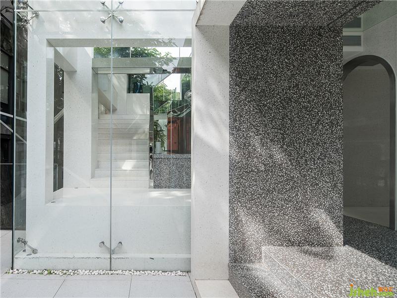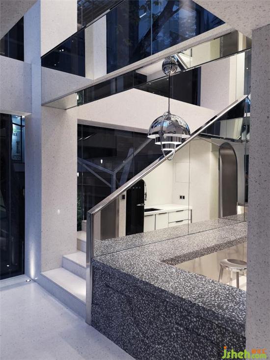 ▼ 水磨石、不锈钢、玻璃三种现代材质之间的对话