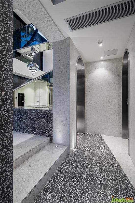 ▼ 米白色与浅灰色水磨石,打造经典耐看的时尚空间