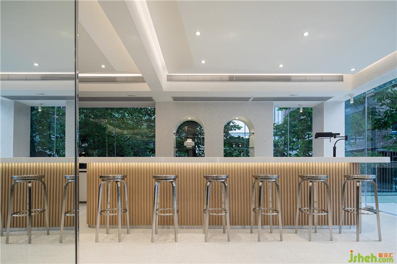 ▼ 四面通透的开放式水吧,员工在这里获得休闲和放松