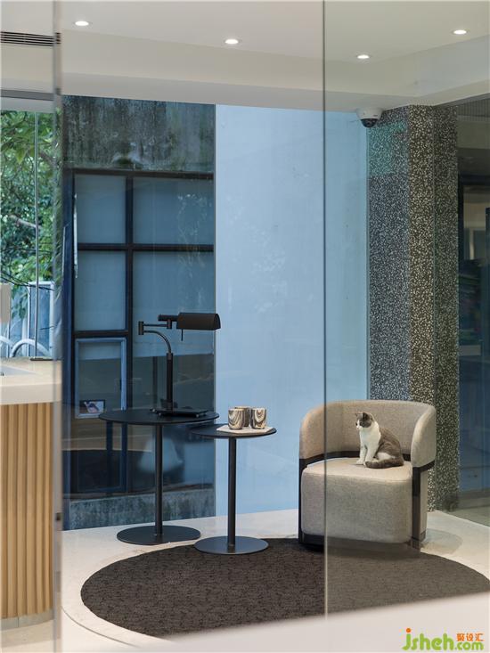 ▼ 玻璃房作为员工休息和打电话、接待客人的功能空间