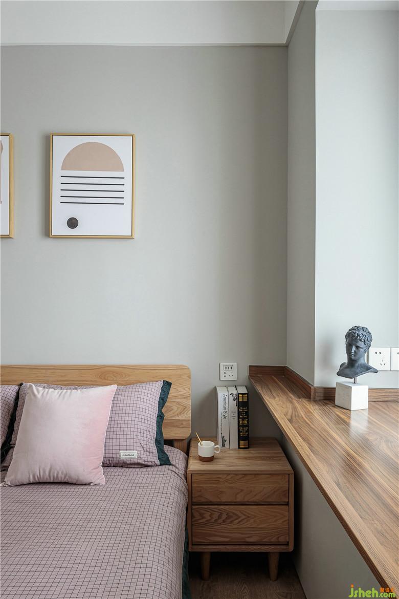 卧室作为独立私密空间,满足起居、储物、化妆功能的同时,家居装修用柔和的色彩,为空间营造一份舒适与恬静。