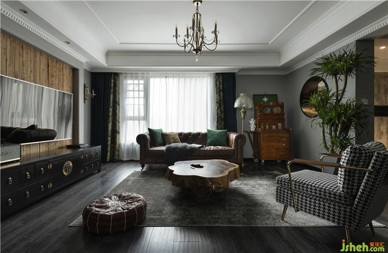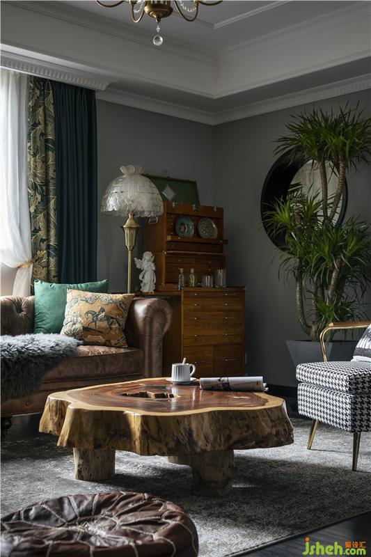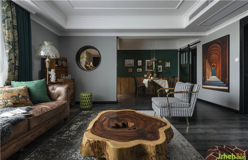 客餐厅延续暖色老木板元素,整个空间采用了质朴的棕色,红色同色系作为辅助色,墙面采用灰色为主调,转换空间画面的同时,随着光影变化,让空间更具沉稳,过道处充满艺术气息的挂画,更给空间带来了艺术气息。