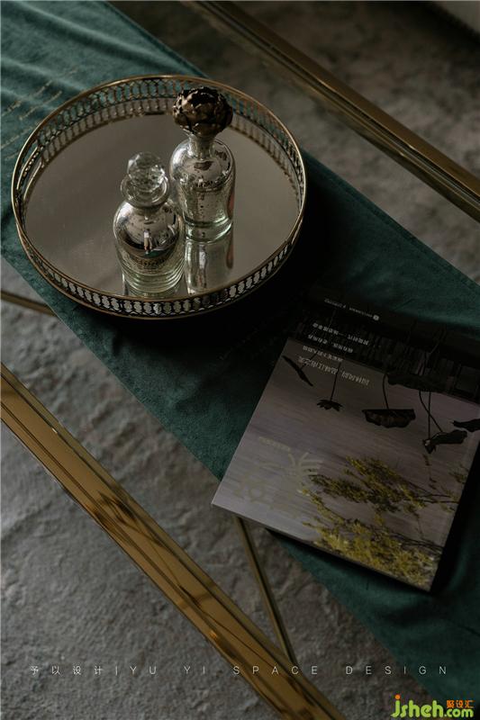 复古元素融入空间,运用金色质感材质加以点缀,营造出高雅的、灵动的画面氛围。