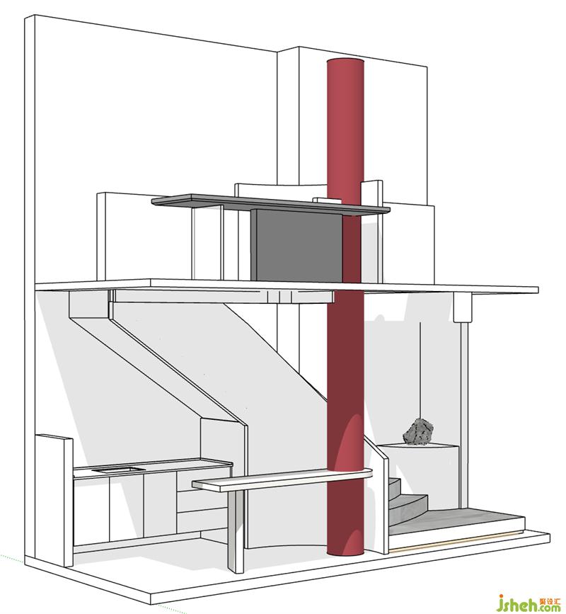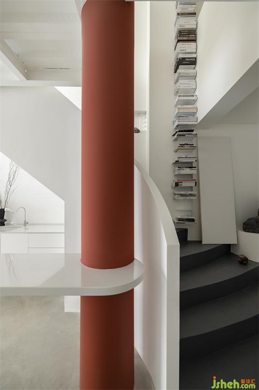 原始户型是一个L10米*W3.8米*H5.8米的方形空间 原始楼梯和楼板钢架已是成形状态
