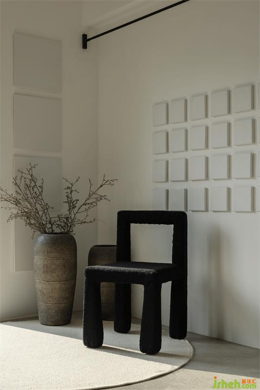 墙、顶、地简洁的块面营造静谧的空间氛围