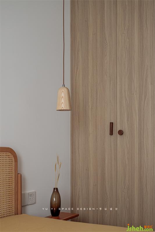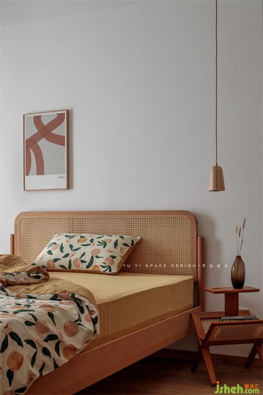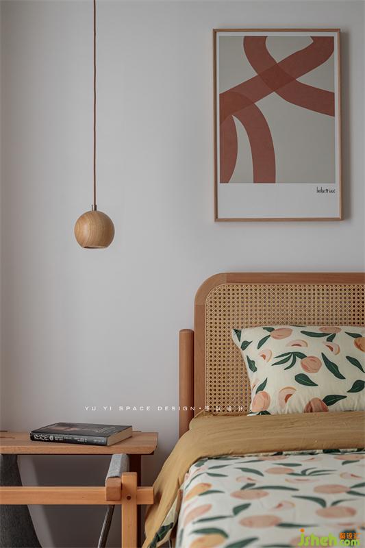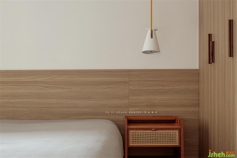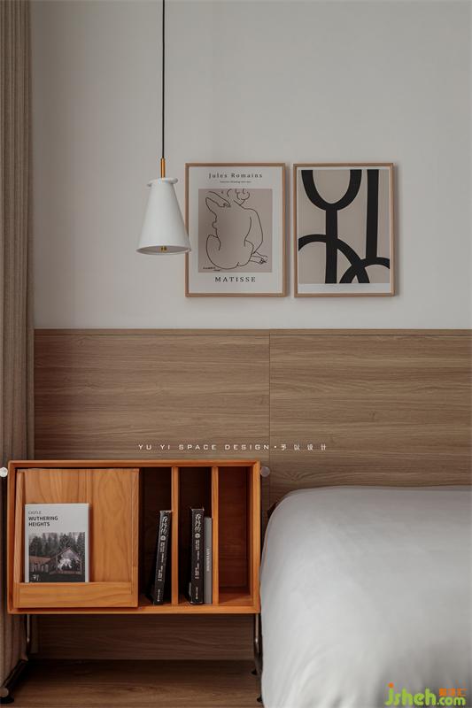 左右不对称的床头柜与小吊灯是有意而为之