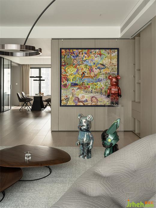 1.将入户段景区墙体拆除后进行内退来设计手办的展示柜,巧妙增加收纳功能来串联每个空间之间的关系2.多功能房门洞调整,将光线引进与过道空间进行关系串联