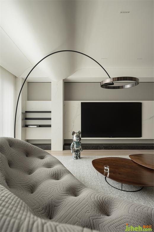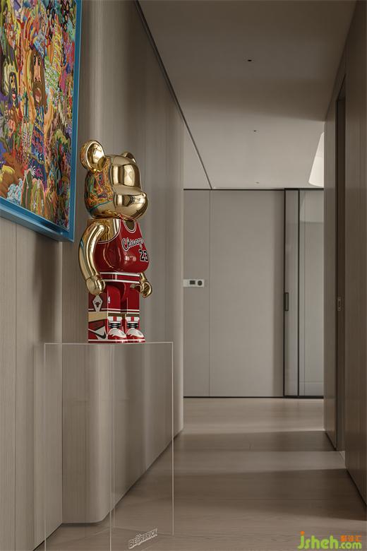 走廊内退墙体,让人的视觉被聚中,较长的走廊空间好像变成了艺术展馆,豪宅设计将爱好填入生活的场景,融入现代时尚的格调,展现居住者的生活色彩。