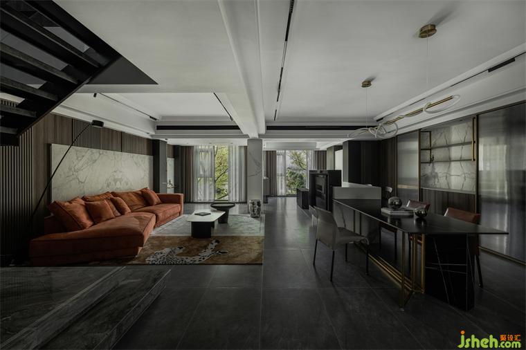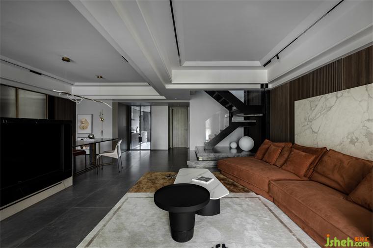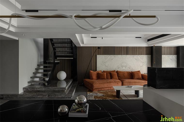 楼梯设计悬浮感,就像一件艺术品陈列于空间,增强空间张力感。