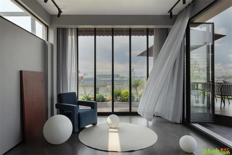 光影流动,别墅装饰设计赋予空间“生命力”。三楼搭建区以折叠玻璃门做隔断,光的进入毫无阻碍。