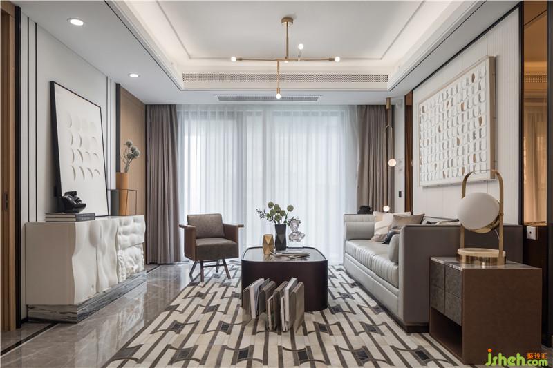在整个样板房的设计过程中,以趣味性的元素,艺术化的家具,层次感的细节和极具表现力的材质,诠释了翡翠东方的品位和格调。经典棕色主调,搭配艺术气息的饰品摆件,现代感的地毯,以及提升视觉感的灯具。艺术与艺术之间,不同层次表现以及微妙的搭配,令空间无比舒适、尊贵。
