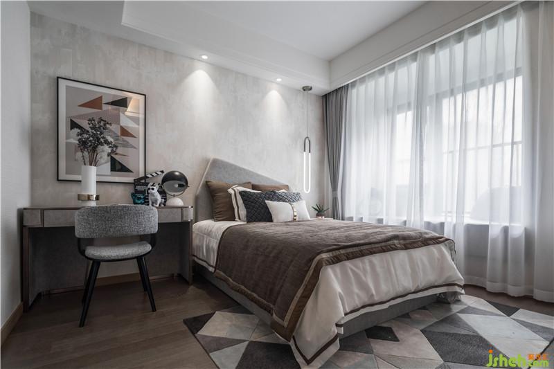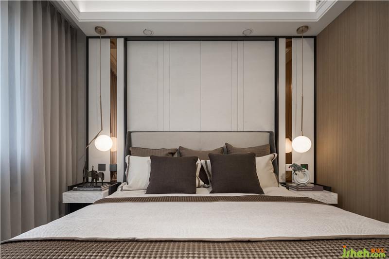 “品味,像清风拂动,像月光挥洒,你只能感受它的存在,却难以真切地描述它。”,主卧是彰显主人品味的空间,延续客厅的风格特点,以棕色作为主色调,以白色衬托。背景墙上干净清爽白与棕的组合,主卧中的氛围似乎有了律动的生机,品质上乘的床品与软饰,突出了主人对于休憩空间的舒适度的追求,更是对生活哲学的理解。
