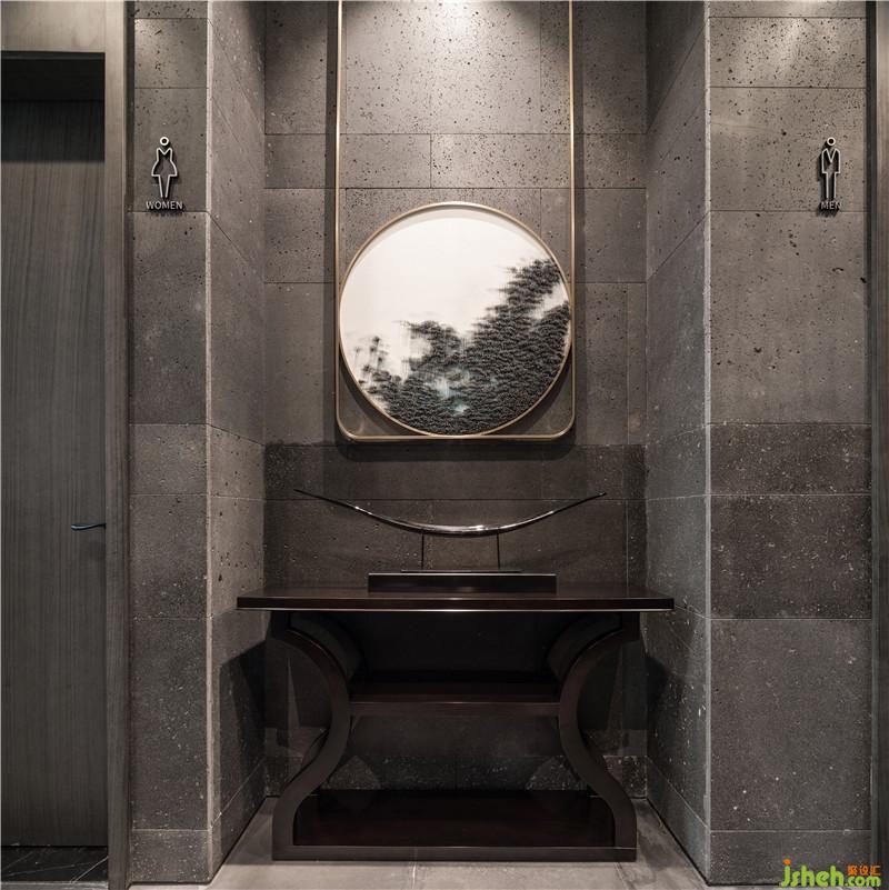 卫生间的空间布置也是延续湖居特色的格调、引入东方特色艺术装置画及摆件以意境的营造为主、深远而幽静。